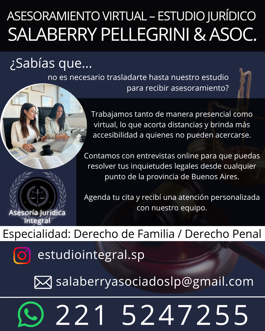 #LaPlata | ASESORAMIENTO VIRTUAL – ESTUDIO JURÍDICO SALABERRY PELLEGRINI & ASOC.