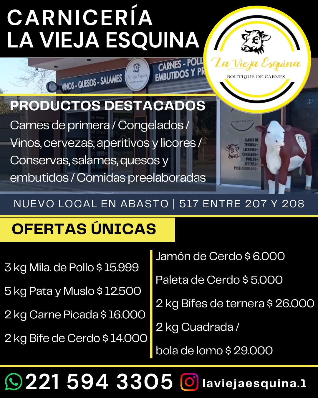#Abasto | Carnicería La Vieja Esquina, boutique de carnes, reconocida por su calidad y atención personalizada, estrenó nuevo local en la calle 517 entre 207 y 208, donde ya funciona con una propuesta renovada y muchas ofertas.